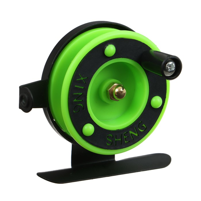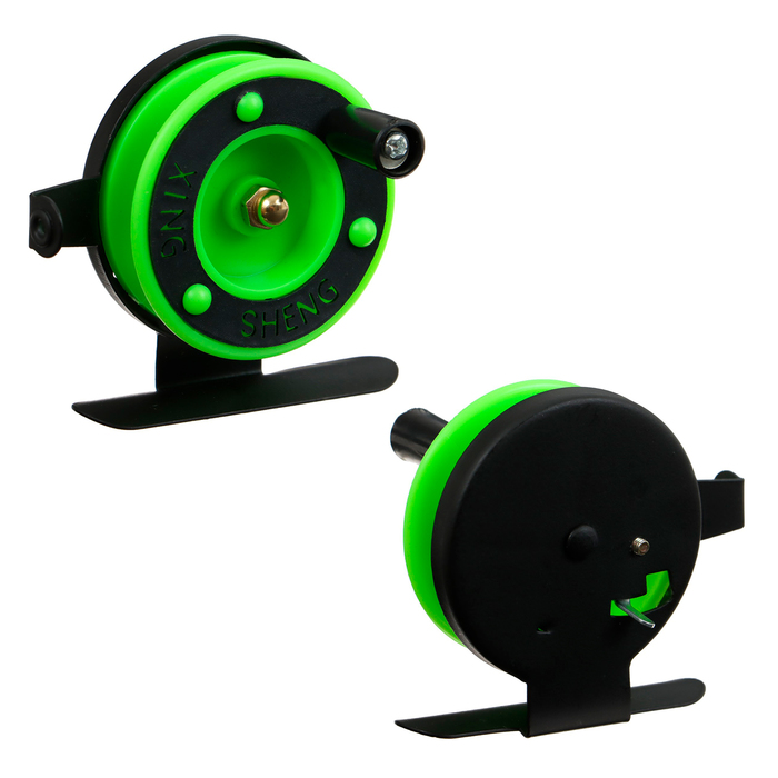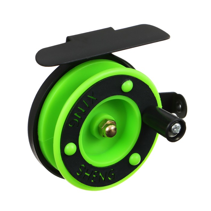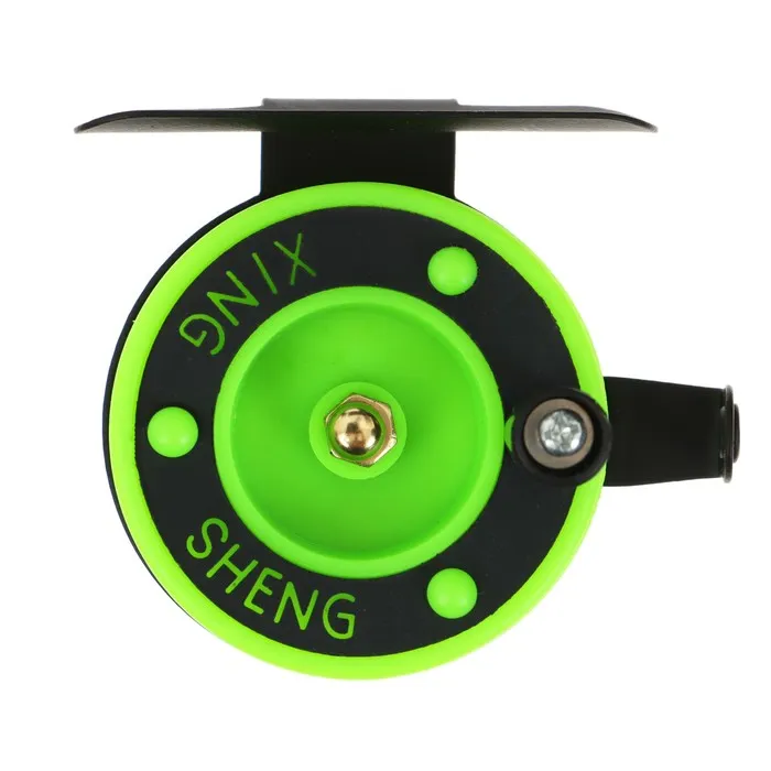 Катушка инерционная, металл пластик, диаметр 5 см, направляющая лески, черно-салатовый, 601D — Характеристики