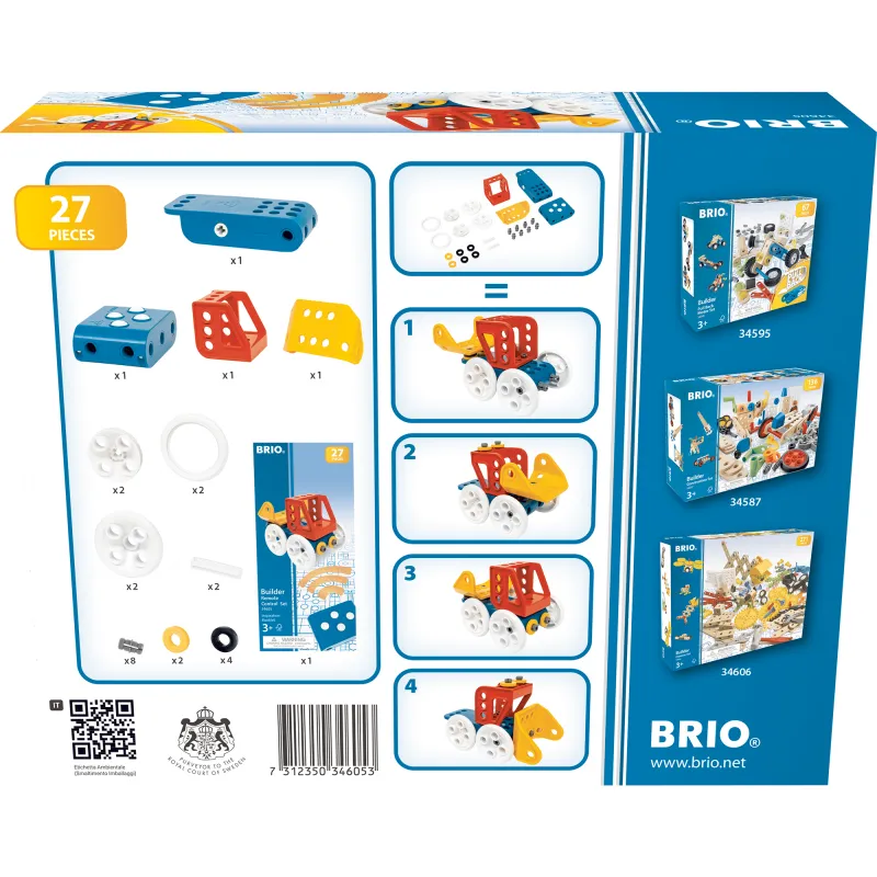 С помощью набора Brio Builder 34605 вы сможете построить свой первый радиоуправляемый автомобиль. Благодаря четырёхстороннему управлению, качественным материалам и простому в использовании пульту, эта игрушка идеально подходит для малышей, мечтающих сидеть за рулём. Соберите автомобиль вокруг двигателя, установите колёса и возьмите управление в свои руки. Открытый дизайн BRIO Builder позволяет модифицировать эту игрушечную машину и совмещать её с уже существующими моделями BRIO Builder для нового радиоуправляемого приключения.