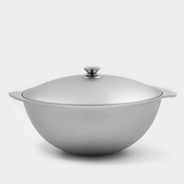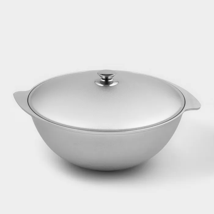 Казан изготовлен из пищевых алюминиевых сплавов особым методом коктильного литья. Застывание жидкого сплава происходит без какого-либо внешнего воздействия. Это позволяет получить качественный и надежный продукт. Подобное литье – самый экологически чистый метод изготовления любой толстостенной посуды. Она будет служить вам долгие годы, сохранит свою форму и первозданные потребительские качества.