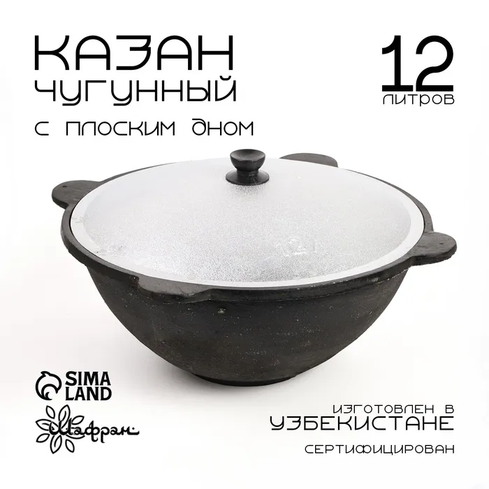 Казан чугунный, 12 л, плоское дно, алюминиевая крышка — Характеристики
