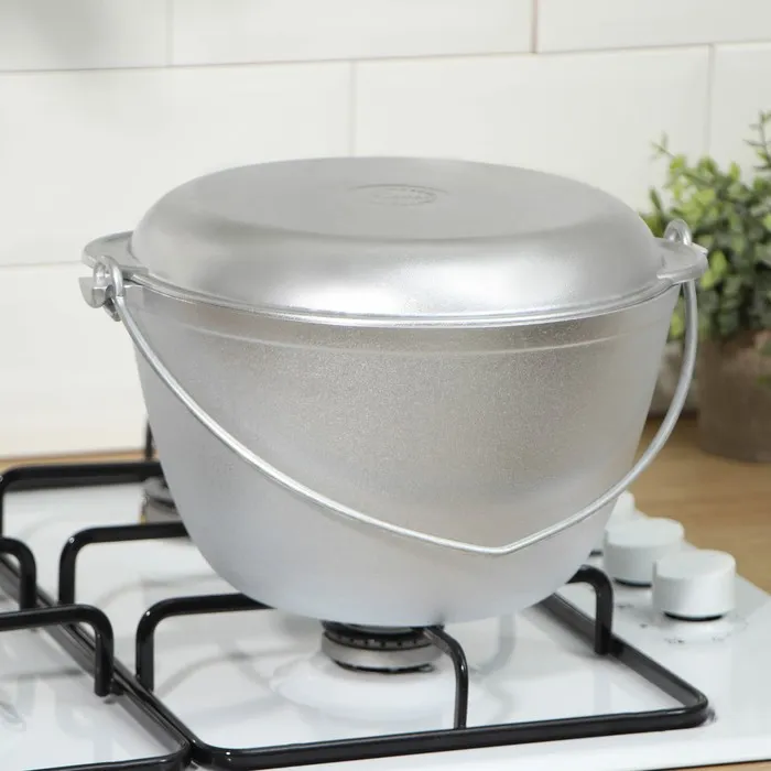 Литой алюминий равномерно распределяет тепло по всей поверхности казана. Ваши продукты проходят процедуру «томления»: готовятся с сохранением всех полезных качеств. Благодаря толстым стенкам казан походный, 4 л, крышка-сковорода, цвет серебряный надолго сохранит ваши блюда горячими. Еда в такой посуде не пригорит и не разварится. Крышка казана может быть использована, как сковорода: поджарьте свежее пойманную рыбу, приготовьте вкусную яичницу на завтрак – вы ограничены только вашей фантазией! Удачных вам походов!
