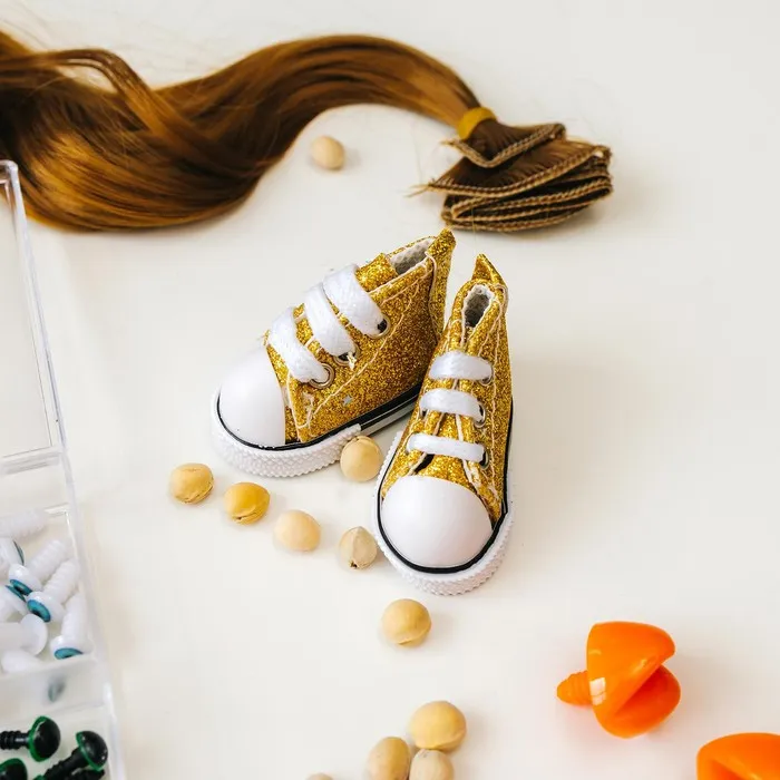 Кеды для кукол «Блёстки», длина подошвы: 5 см, золотой — Характеристики