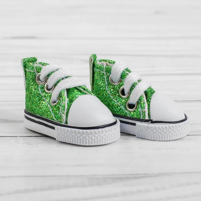Кеды для кукол «Блёстки», длина подошвы: 5 см, цвет зелёный