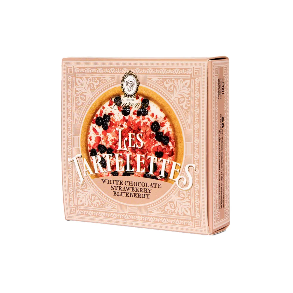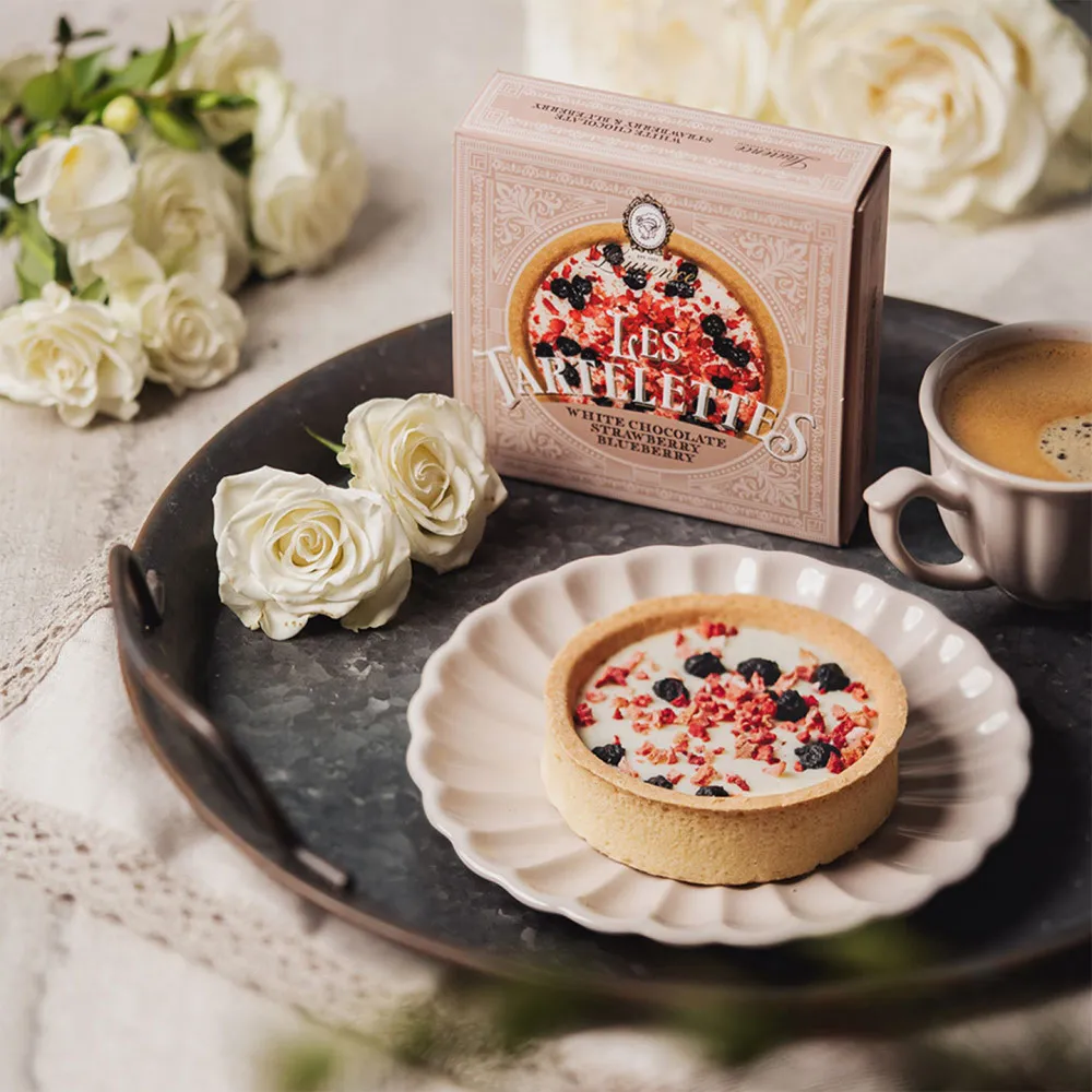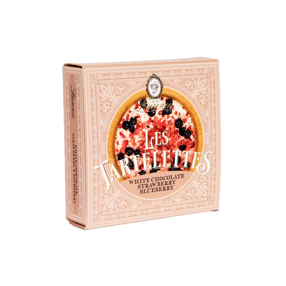 Ингредиенты: тарт (54%) [пшеничная мука (содержит глютен), растительные масла и жиры (частично гидрогенизированное хлопковое масло, частично гидрогенизированное подсолнечное масло, частично гидрогенизированное пальмовое масло), яйца, сахар, эмульгатор: моно- и диглицериды жирных кислот, соль, консервант: сорбат калия, кислота: лимонная кислота, красители: бета-каротин, ароматизаторы: ванилин], белый шоколад (сухое молоко 22,8%) (17%) [сахар, какао-масло, цельное сухое молоко, эмульгатор: соевый лецитин, ароматизаторы: натуральный аромат ванили], сахар, растительные жиры (пальмовое, подсолнечное, ши, рапсовое масла), обезжиренное сухое молоко, черника (3%) [черника, яблочный концентрат], сублимированная клубника (0,5%). Может содержать следы: сульфитов, глютена, молока, яиц, соевых бобов, кунжута, арахиса, орехов.