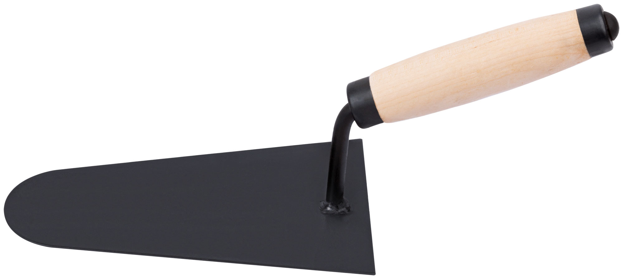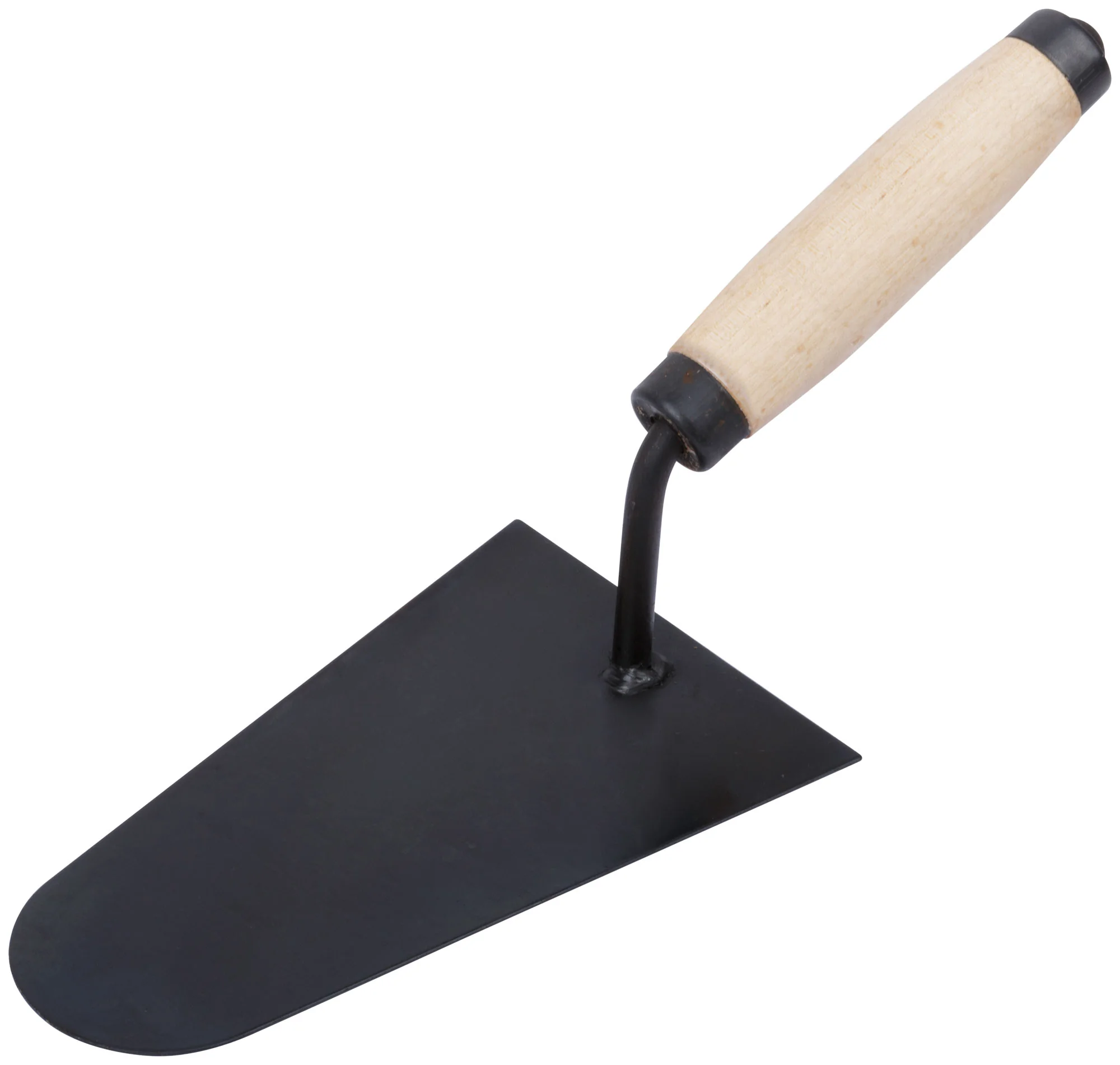 Рабочая часть кельмы выполнена из прочной инструментальной стали, что обеспечивает долговечность и устойчивость к износу. Деревянная ручка удобна для захвата и комфортна в работе, снижая усталость в руках при длительном использовании.