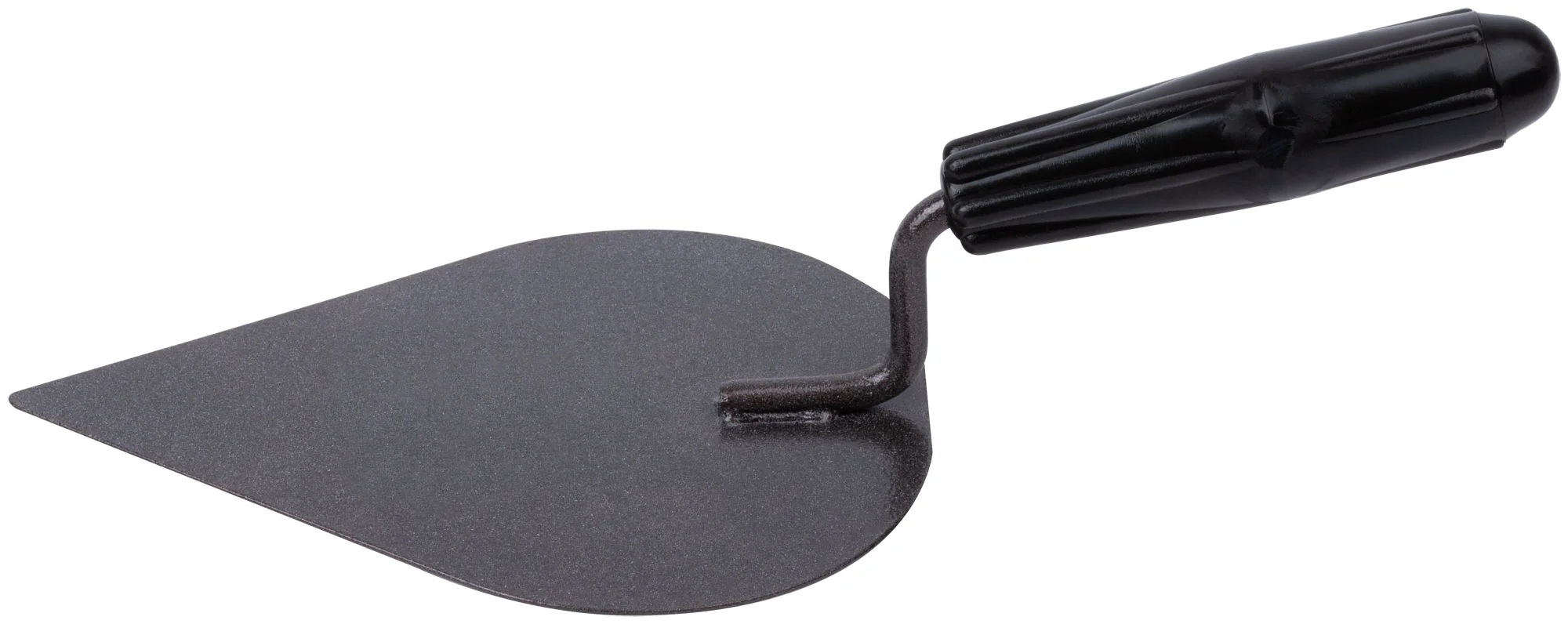 Изготовленная из инструментальной стали с полимерным покрытием, кельма защищена от коррозии и механических повреждений. Пластиковая ручка обеспечивает комфортный захват и снижает усталость при длительной работе.