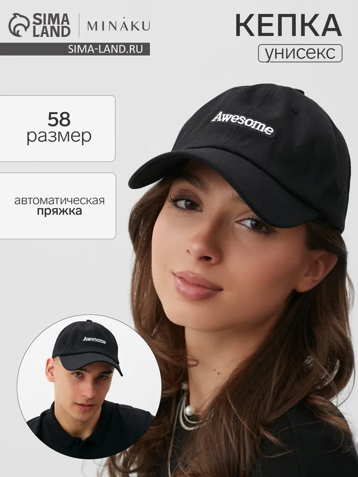 Кепка Awesome MINAKU, чёрная, размер 58 — Характеристики