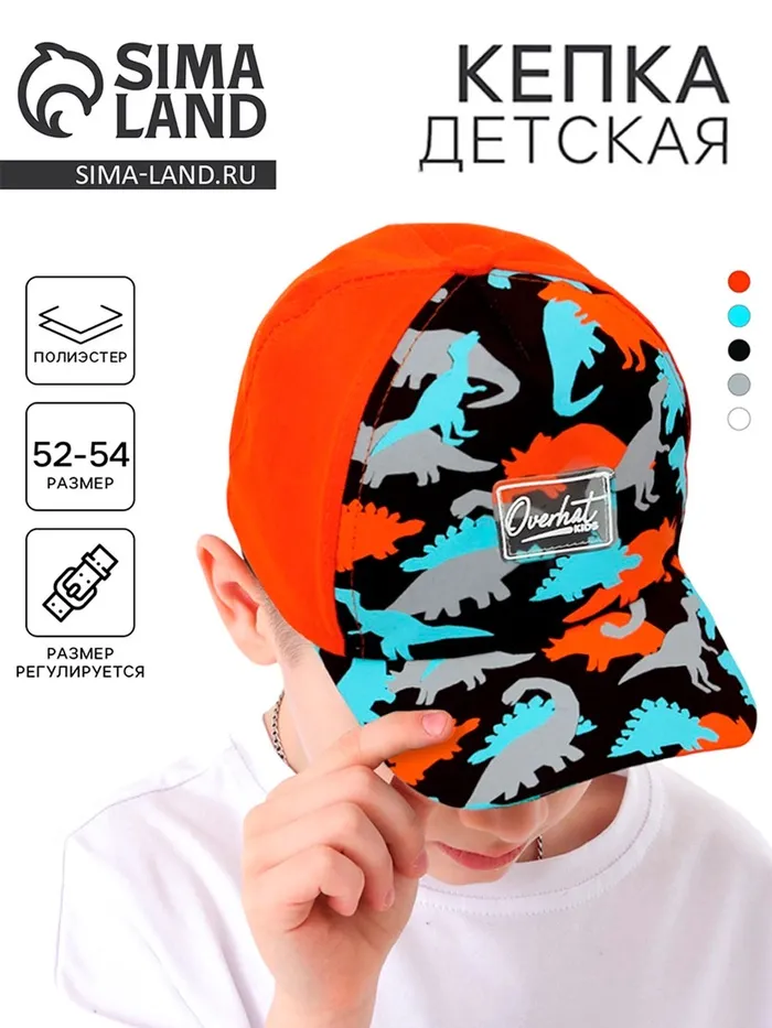 Кепка детская для мальчика «Динозавры», оранжевая, р-р 52-54, 5-7 лет — Характеристики