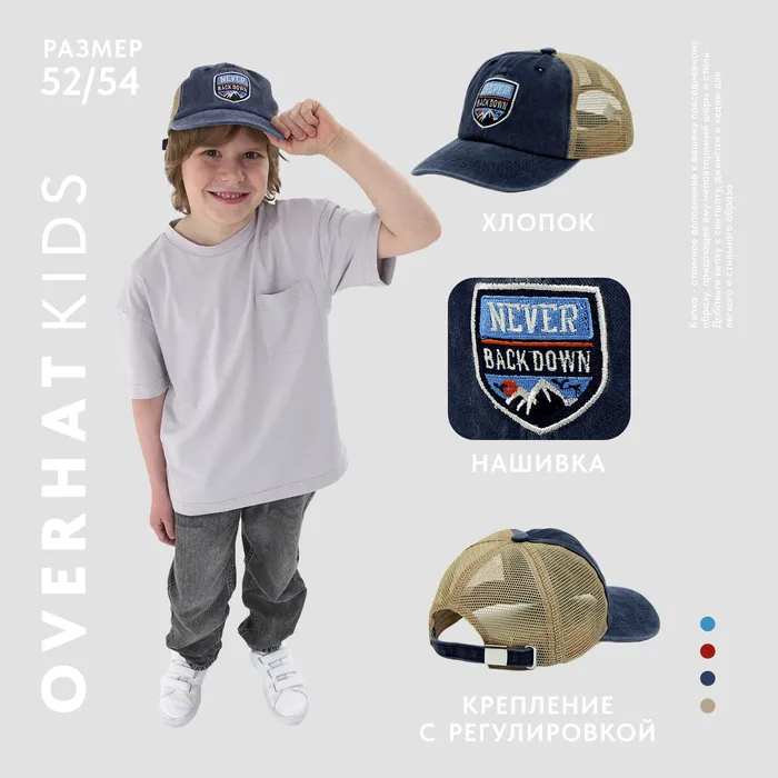 Кепка детская для мальчика с сеткой Never, джинса, р-р, 52-54 5-7 лет — Характеристики