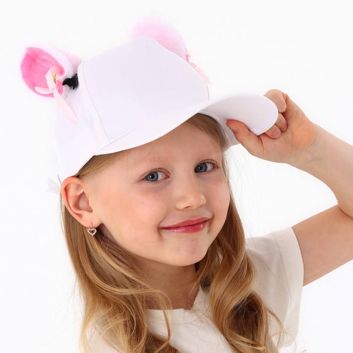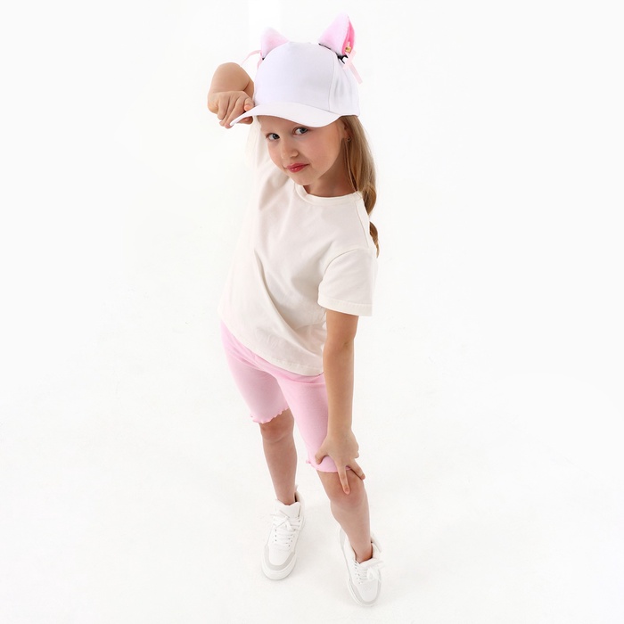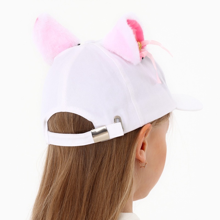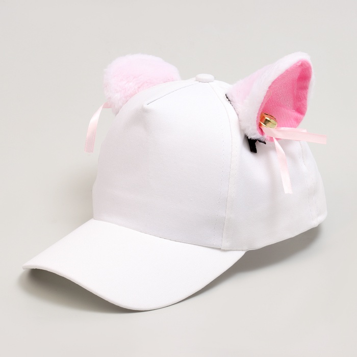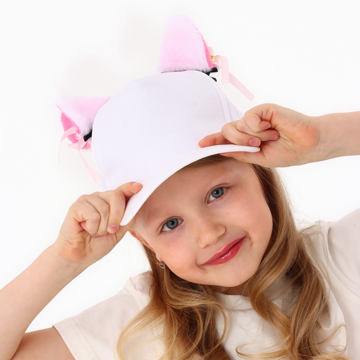 Кепка детская «Кошечка» с ушками, белая, р-р 52-54, 5-7 лет