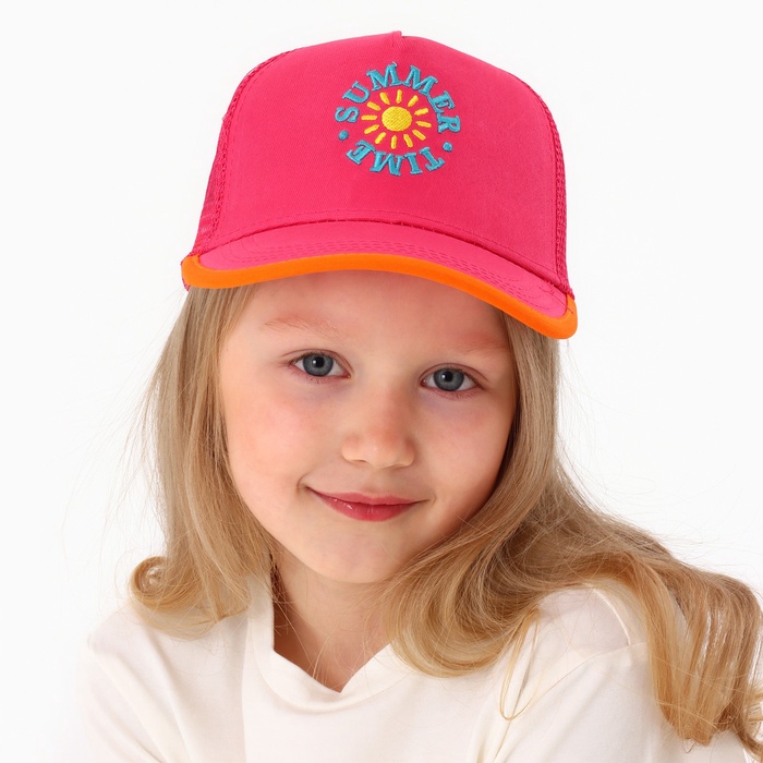 Кепка детская с сеткой Summer time, розовая, р-р 52-54, 5-7 лет