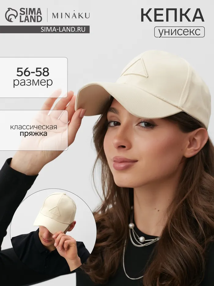 Кепка MINAKU Breek, бежевая, размер 56-58 — Характеристики