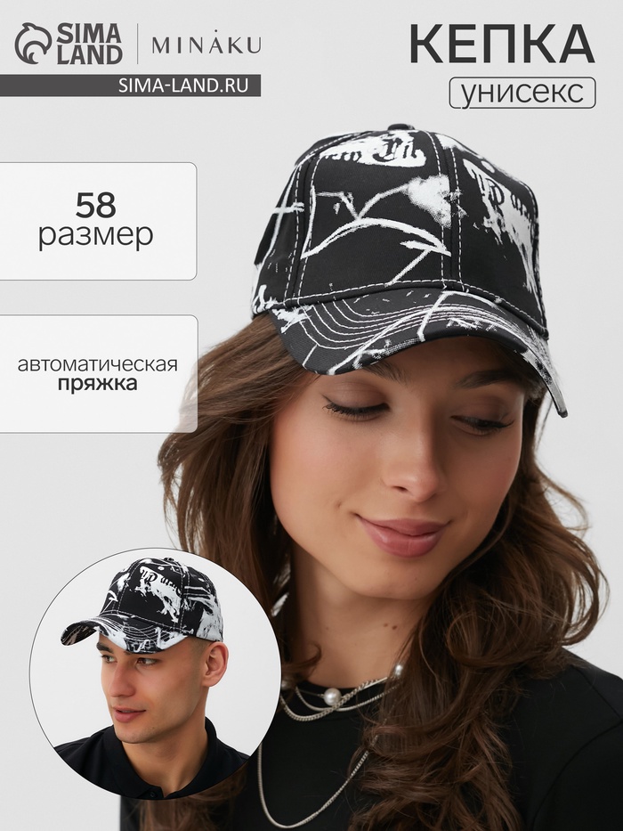 Кепка MINAKU, чёрно-белая, размер 58 — Характеристики