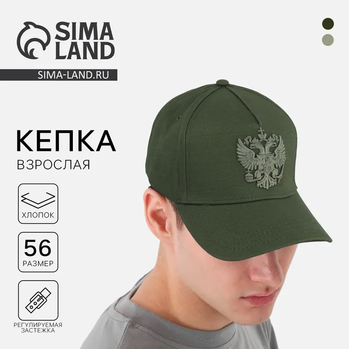 Кепка мужская «Герб», цвет темно-зелёный, р-р 56 — Характеристики