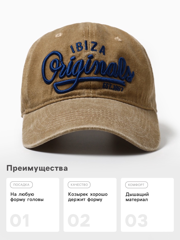 Кепка мужская MINAKU Ibiza, размер 56-58, 100% хлопок, светло-коричневая — Характеристики