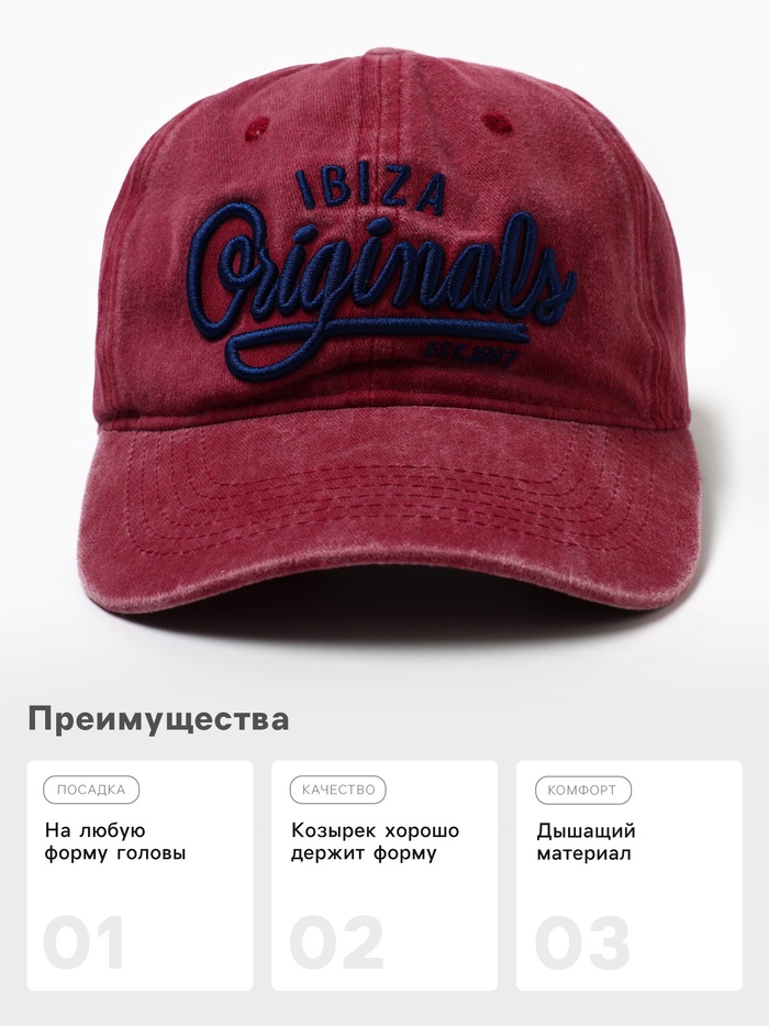 Кепка мужская MINAKU "Ibiza", цвет малиновый, р-р 56-58 — Характеристики