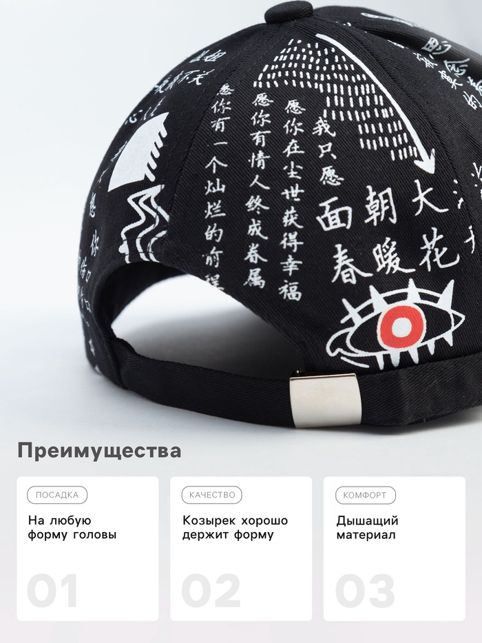 Кепка мужская MINAKU "Иероглиф", цвет чёрный, р-р 58 — Характеристики
