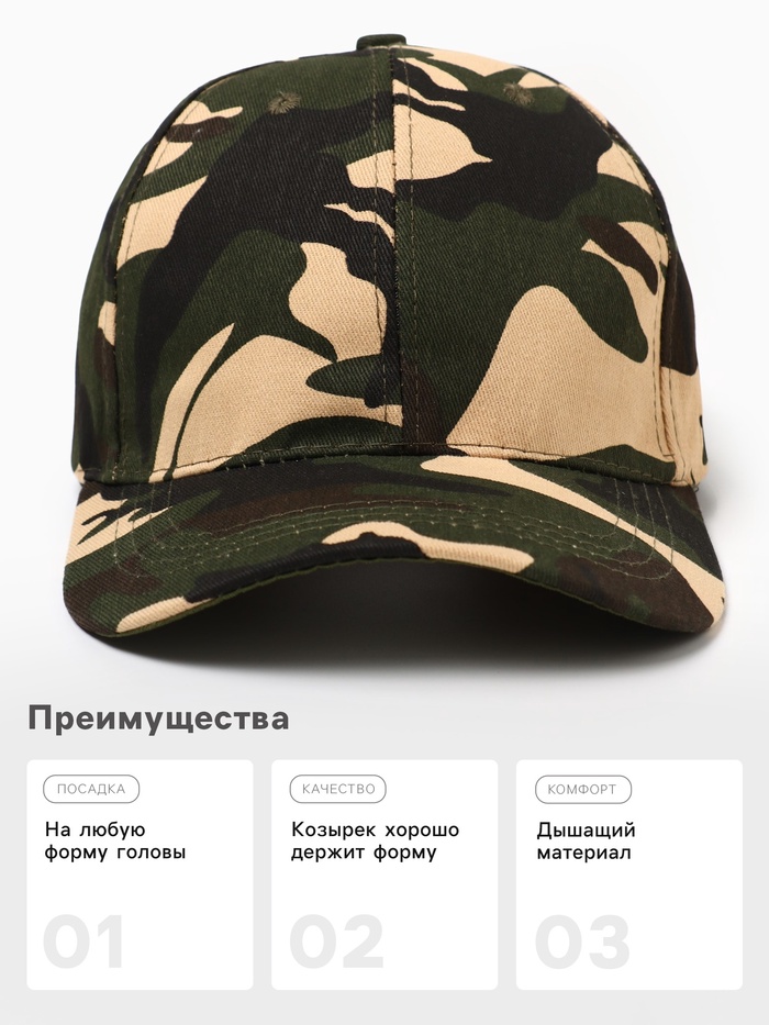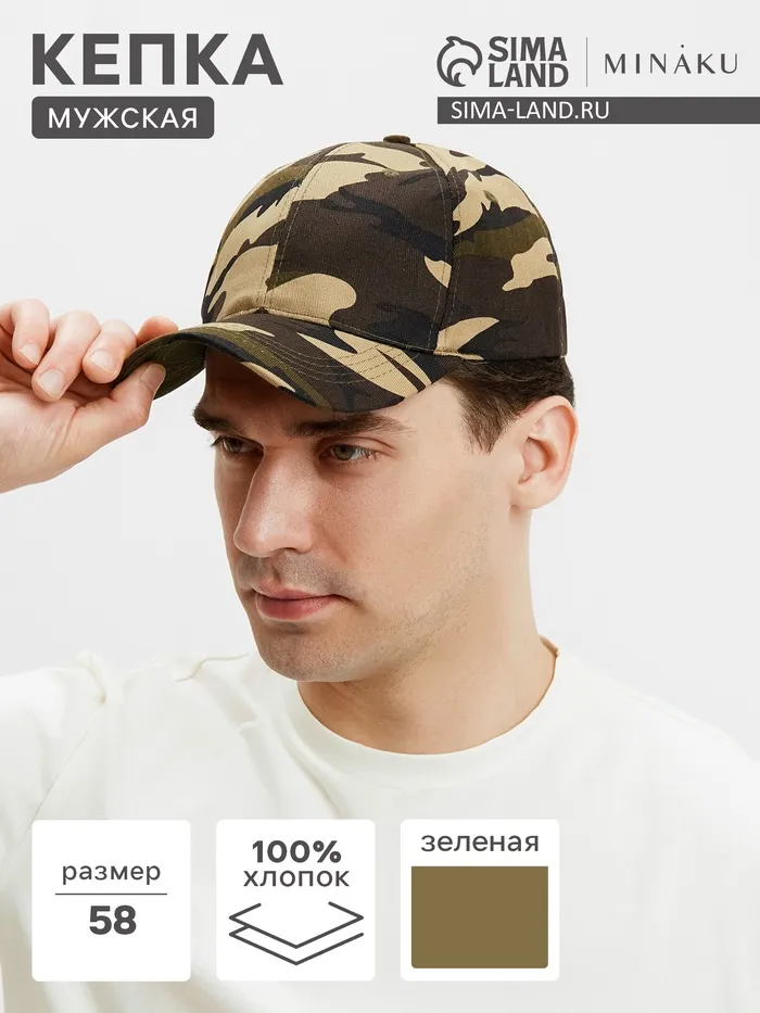 Кепка мужская MINAKU «Камуфляж», 100% хлопок, размер 58, зелёная — Характеристики
