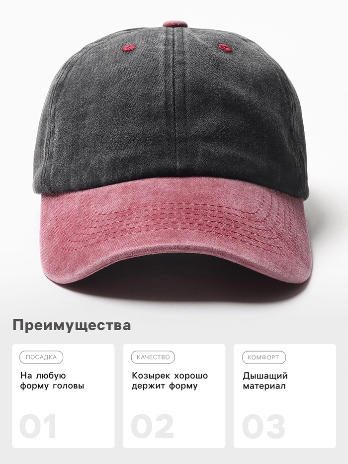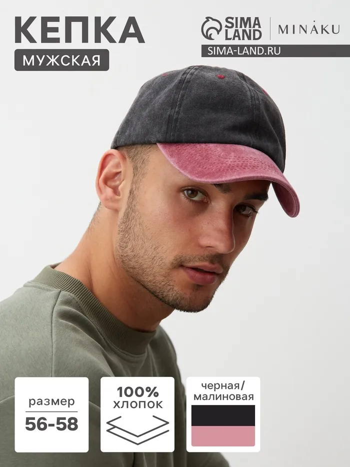 Кепка мужская MINAKU, размер 56-58, малиновая/чёрная — Характеристики