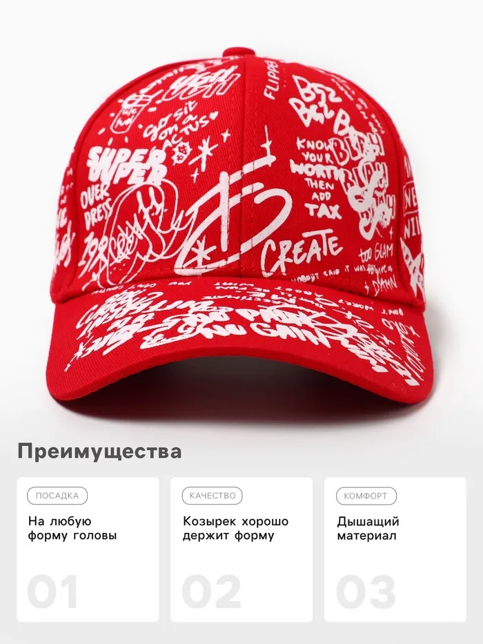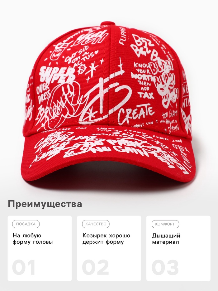 Кепка мужская MINAKU с надписями, цвет красный, р-р 58 — Характеристики