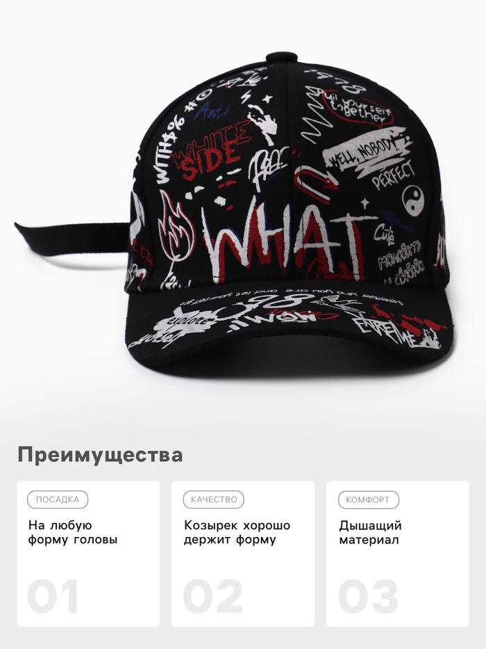 Кепка мужская MINAKU What, размер 58, чёрная — Характеристики