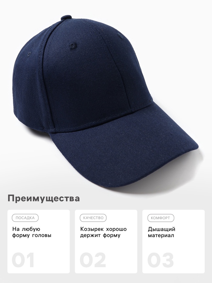 Кепка мужская однотонная MINAKU, размер 58, 100% хлопок, тёмно-синяя — Характеристики