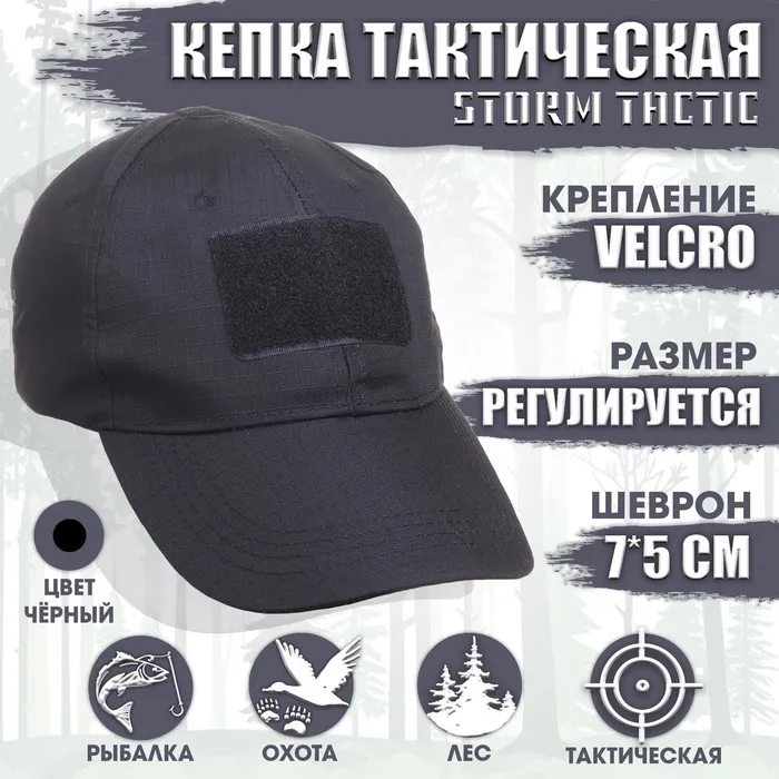 Кепка тактическая Storm tactic с липучкой, черный — Характеристики