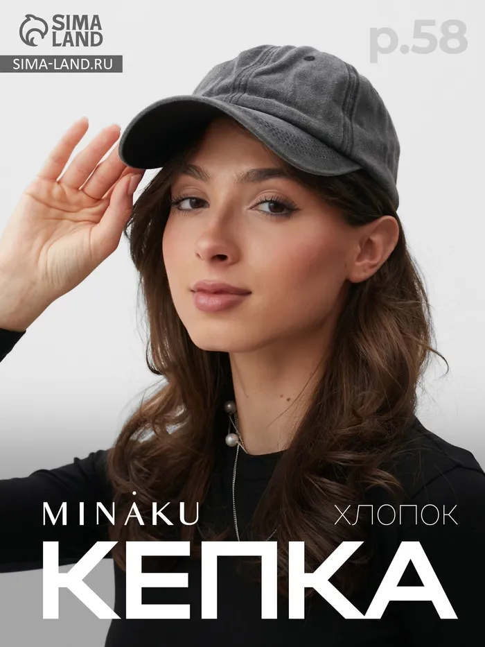 Кепка женская MINAKU, чёрная, размер 58, твил — Характеристики
