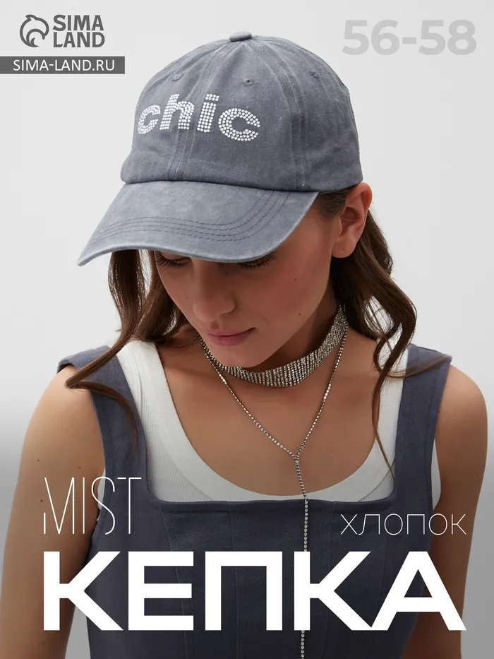 Кепка женская со стразами MIST Chic, серая, размер 56-58 — Характеристики