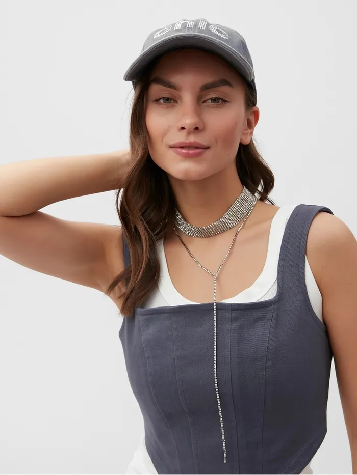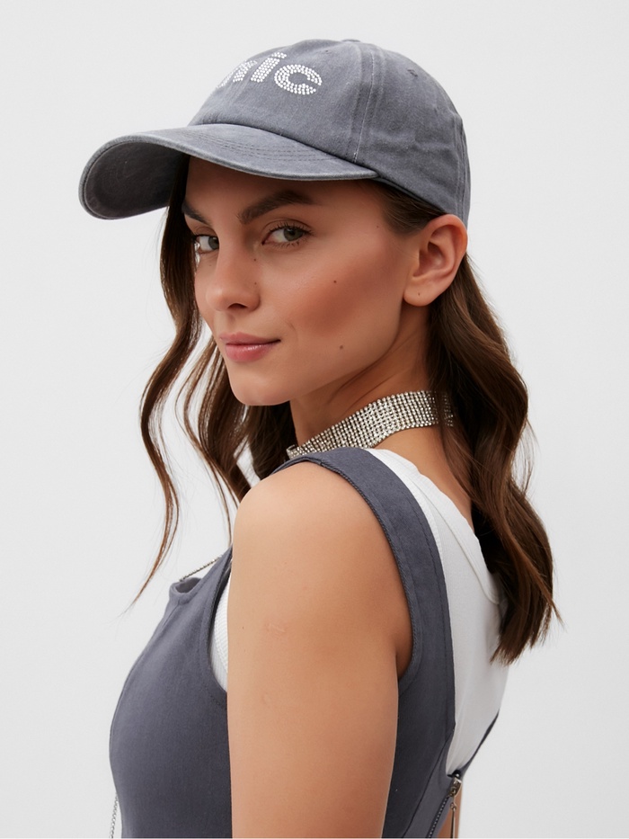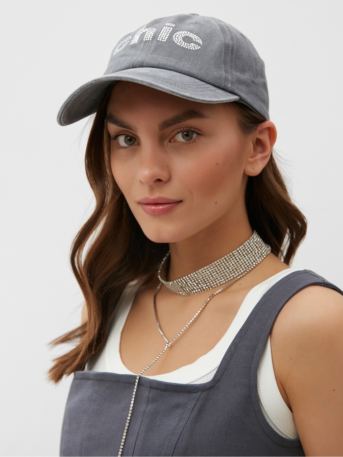 Кепка женская со стразами MIST Chic, серая, размер 56-58