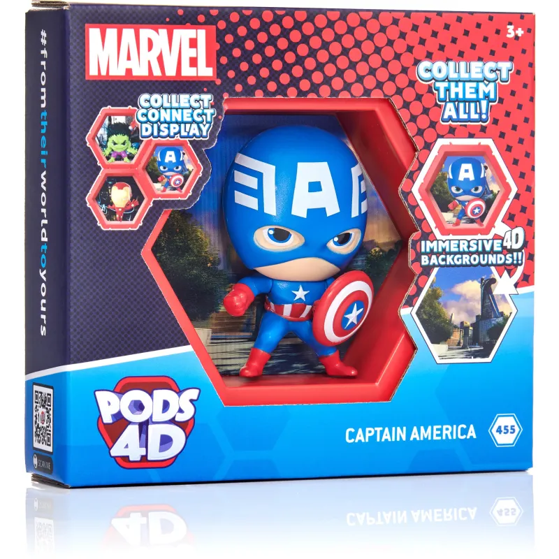 Коллекционная фигурка Marvel Капитан Америка выходит из своего мира и вступает в ваш! Пейзажный фон оснащен великолепным 4D-эффектом и высоким разрешением. Соберите все капсулы Marvel и соедините их вместе. Капсулы можно соединять различными способами, чтобы вы могли создать свою уникальную коллекцию на стене, полке или столе.