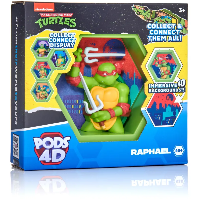 Коллекционная фигура TMNT Рафаэль выходит из своего мира и вступает в ваш! Фон с потрясающим 4D-эффектом и высоким разрешением. Соберите все капсулы Черепашки-Ниндзя и соедините их. Капсулы можно соединять различными способами, чтобы создать уникальную коллекцию на стене, полке или столе.