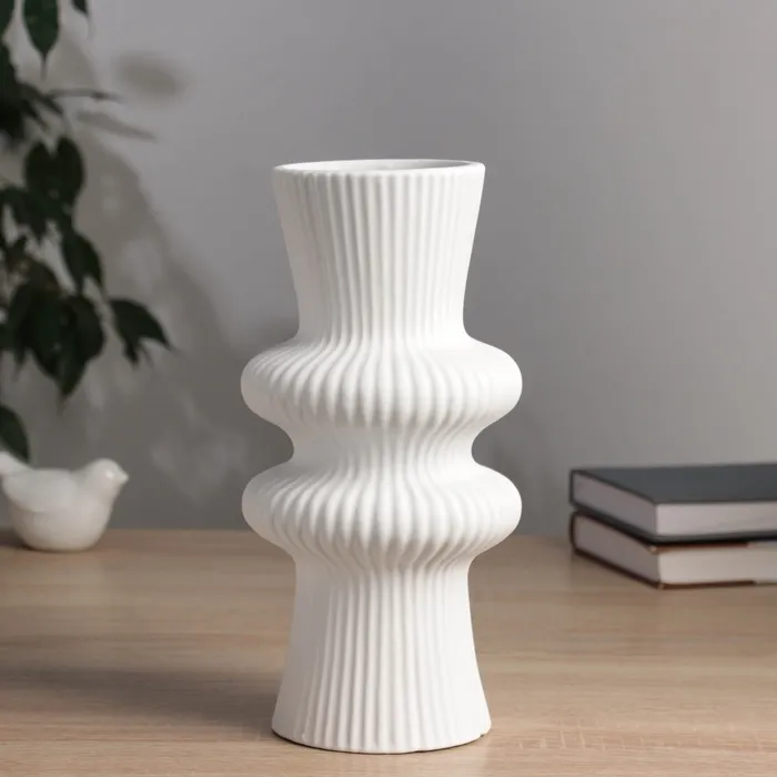 Минимализм, который вдохновляет! Белая керамическая ваза с рельефным узором высотой 24 см — это универсальный акцент, который добавит вашему интерьеру элегантности и гармонии. Её лаконичный дизайн и удобные размеры делают её идеальным выбором для современного дома или офиса.