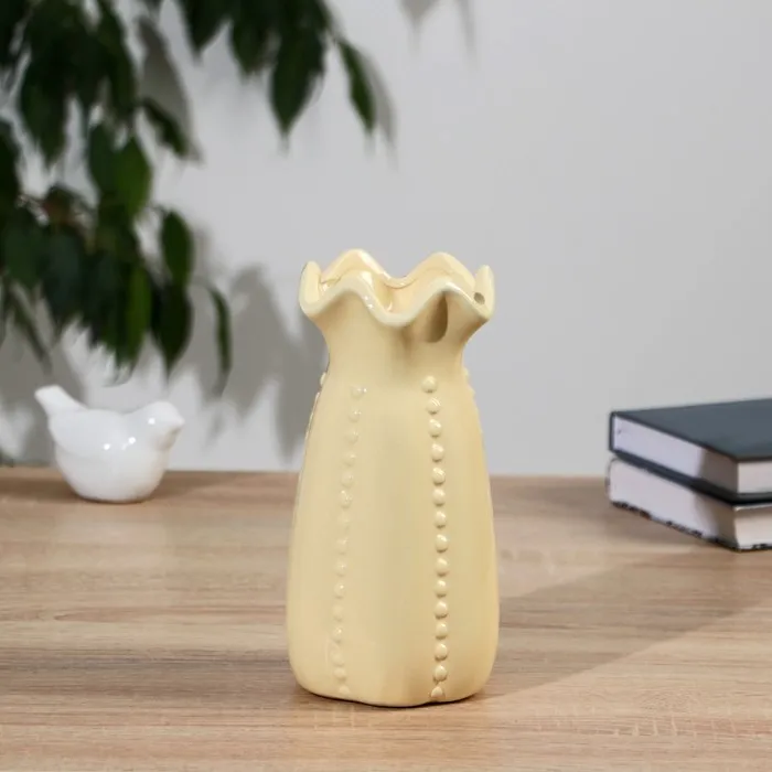 Керамическая ваза для цветов, сухоцветов «Аэлита», настольная, 19 см, жёлтый — Характеристики