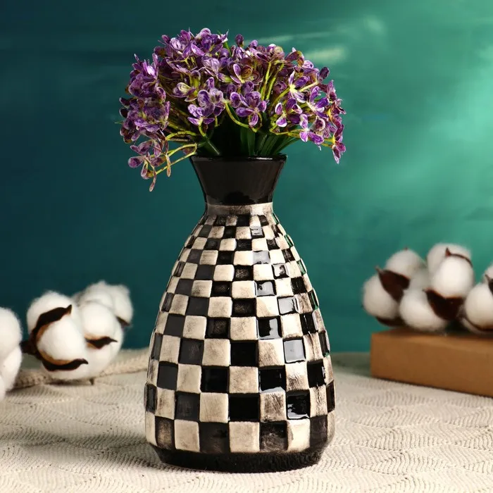 Керамическая ваза для цветов, сухоцветов «Чесс», настольная, 16×10 см — Характеристики