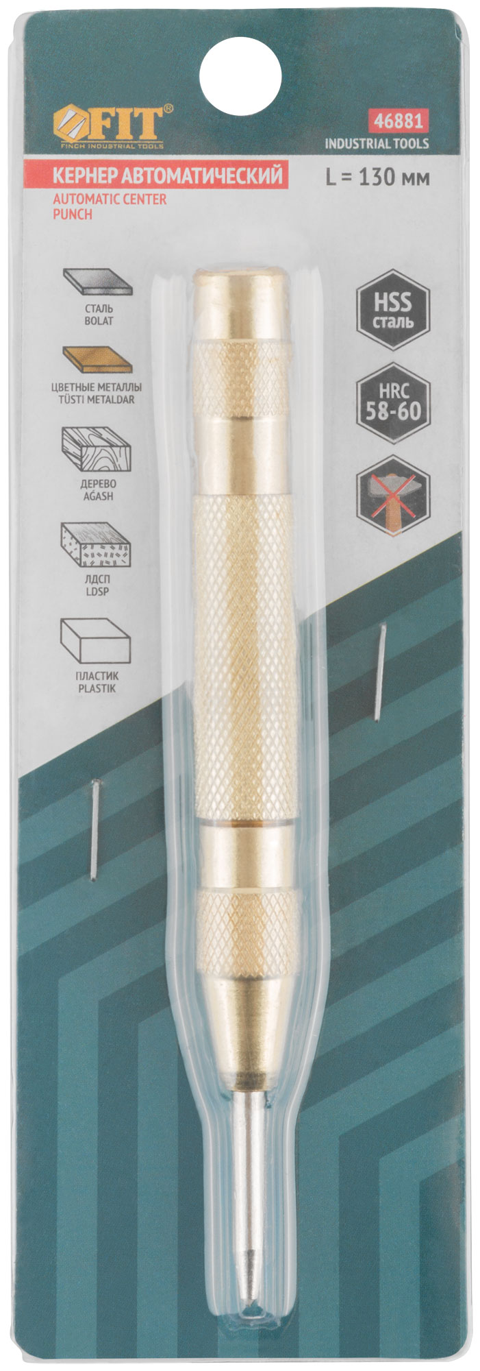 Этот автоматический кернер FIT позволяет выполнять разметку и кернение на незакаленной стали до 45 HRC, а также на цветных металлах, пластике и дереве. Благодаря пружинному механизму, инструмент можно использовать одной рукой, что особенно удобно в труднодоступных местах.