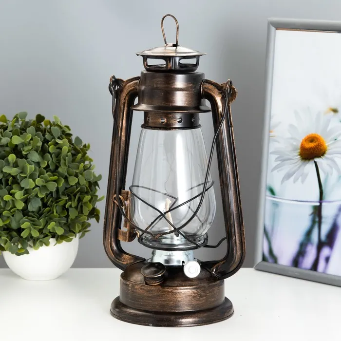 - Работает на керосине, создавая мягкое и тёплое освещение.