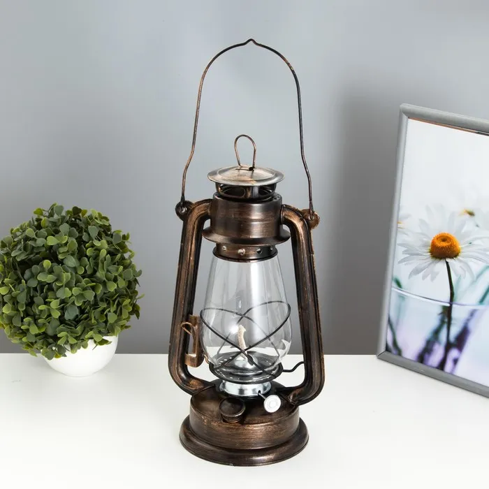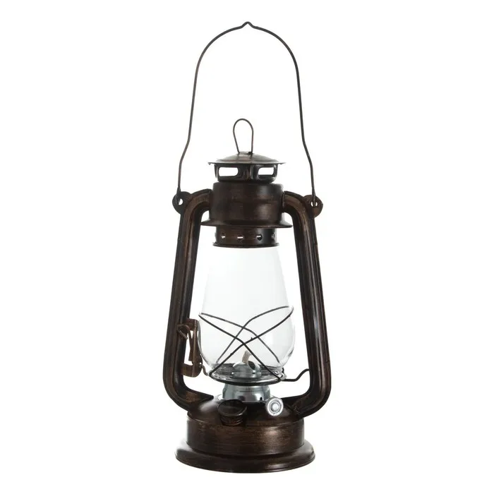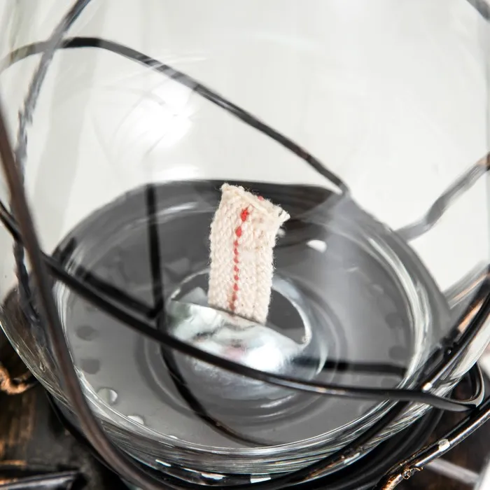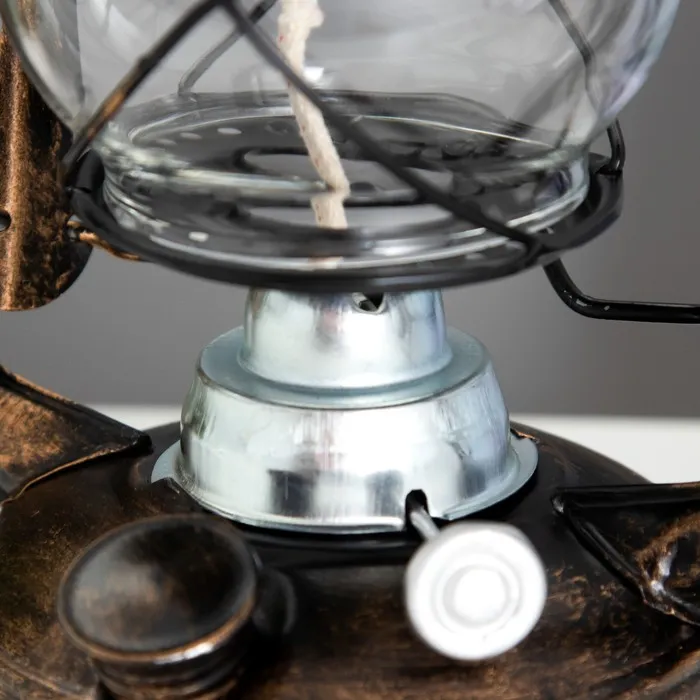 Декоративная керосиновая лампа — это стильный аксессуар, который добавит интерьеру уют и аутентичность. Её металлическое основание коричневого цвета и прозрачный стеклянный плафон создают мягкое, рассеянное освещение, идеальное для создания атмосферы в доме или на открытом воздухе. Лампа работает на керосине, что делает её практичным и эстетичным решением.
