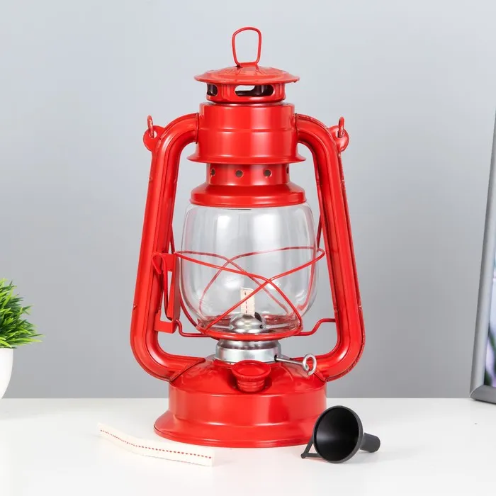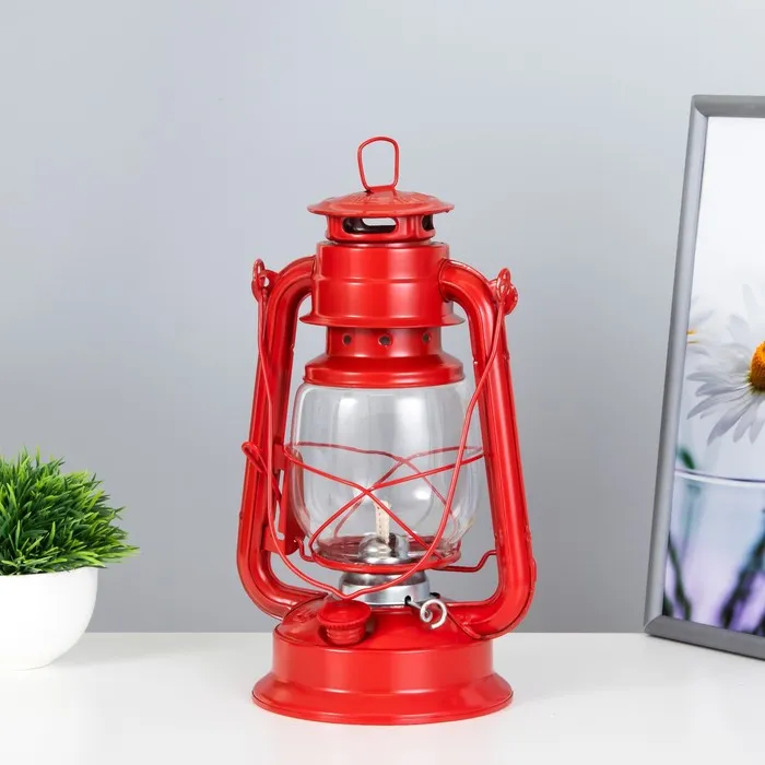 Декоративная керосиновая лампа в красном исполнении — это яркий акцент для интерьера, который создаёт атмосферу уюта и аутентичности. Её металлическое основание насыщенного красного цвета и прозрачный стеклянный плафон создают мягкое, рассеянное освещение, идеальное для дома или открытых пространств. Лампа работает на керосине, что делает её практичным и стильным решением.