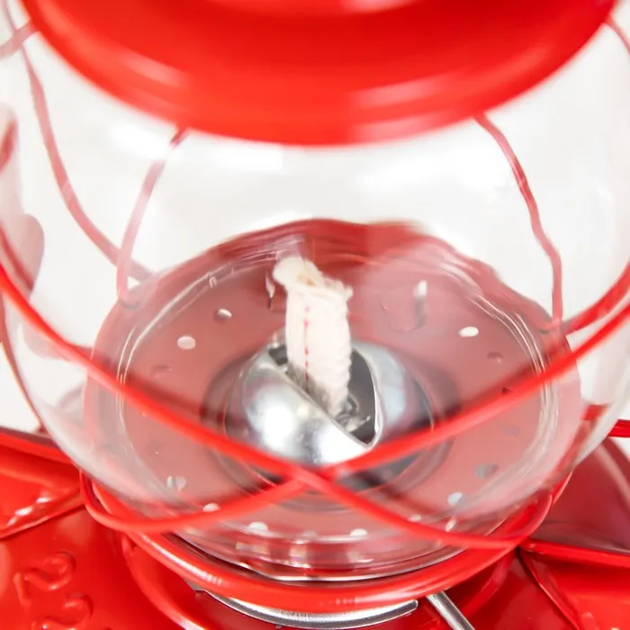 Эта лампа сочетает в себе функциональность и эстетику. Она не только освещает пространство, но и становится стильным украшением интерьера. Красный цвет и прозрачный плафон создают уютную атмосферу, а использование керосина добавляет аутентичности.