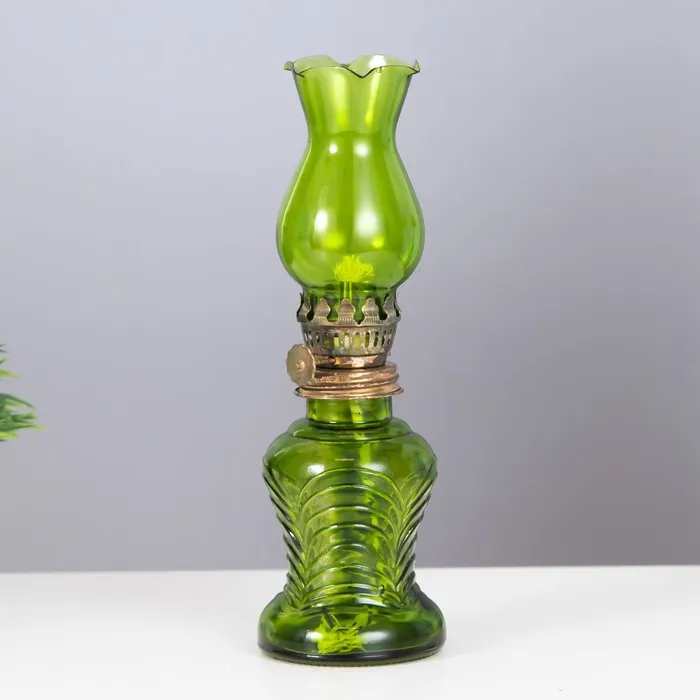 Декоративная керосиновая лампа зелёного цвета от «RISALUX» станет стильным дополнением вашего интерьера. Эта изысканная модель без плафонов выделяется своей прозрачностью и нестандартной формой. В основе её дизайна лежит стекло, которое придаёт лампе лёгкость и элегантность.