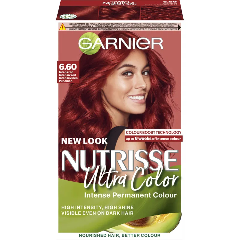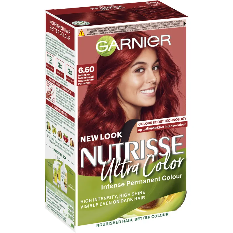 Garnier Nutrisse Ultra Color стойкая краска придаст вашим волосам красивый, блестящий и длительный оттенок! Вы получите насыщенный цвет и натуральный вид волос. Кондиционер в упаковке содержит масла авокадо, оливы, карите и клюквы, которые закрывают волокна волос и запечатывают цвет внутри. Одновременно кондиционер питает, укрепляет и эффективно защищает волосы от ломкости. Garnier Nutrisse Ultra Color также покрывает седину до 100%. Волосы становятся мягкими и ухоженными! Продукт не предназначен для лиц младше 16 лет.