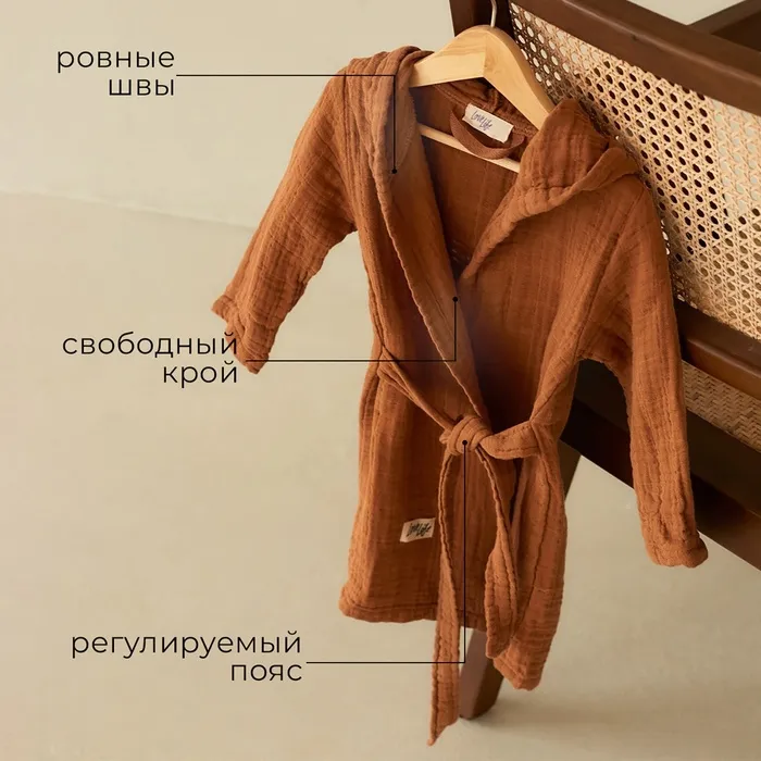 Халат детский муслиновый LoveLife (2 года, рост 92-98 см), цвет корицы, 100% хлопок, 235 гр/м2 — Характеристики