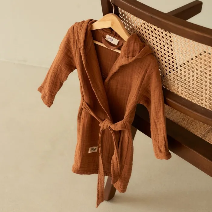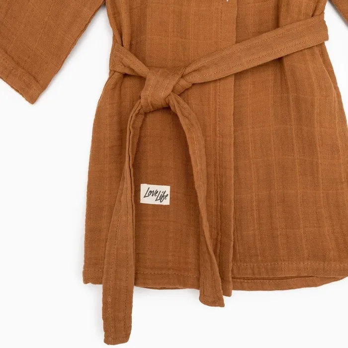 Халат детский муслиновый LoveLife (5 лет, рост 110-116 см), цвет корицы, 100% хлопок, 235 гр/м2