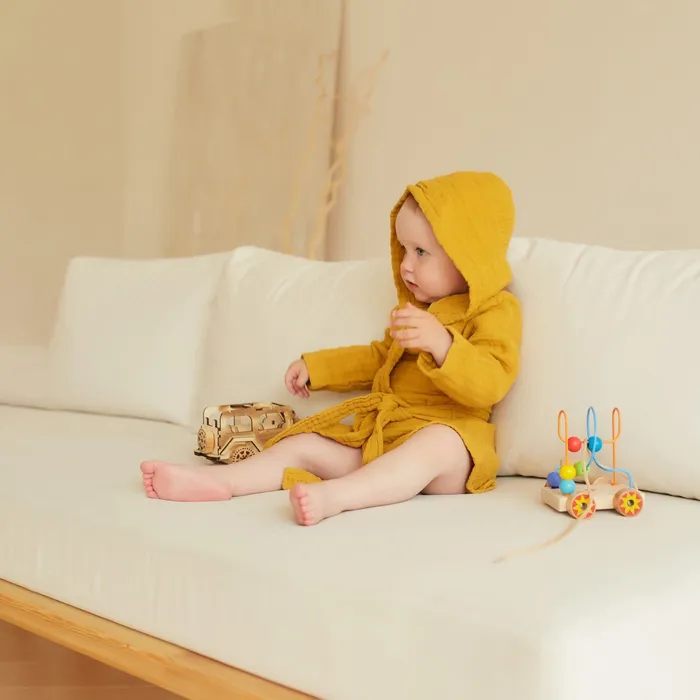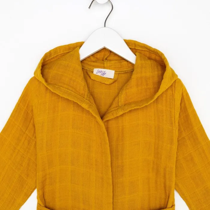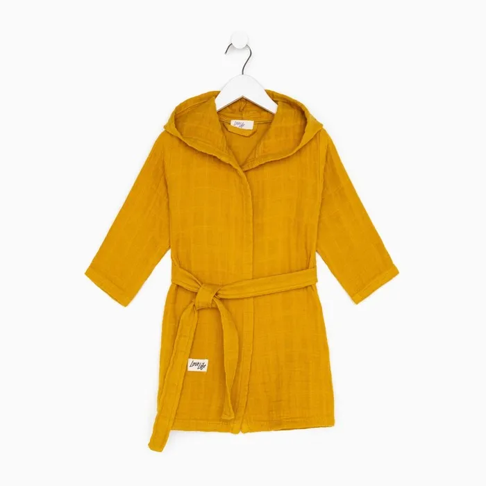 Халат детский муслиновый LoveLife (4 года, рост 104-110 см), горчичный, 100% хлопок, 235 г/м²