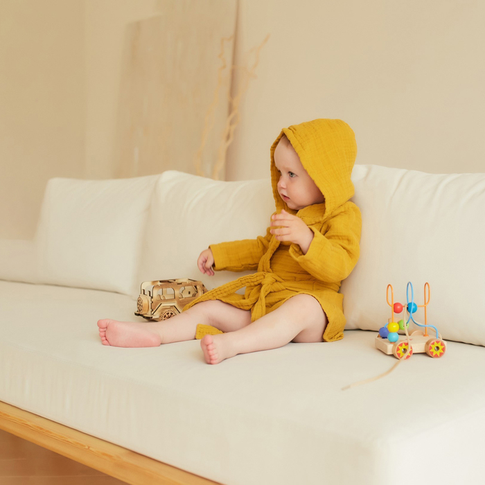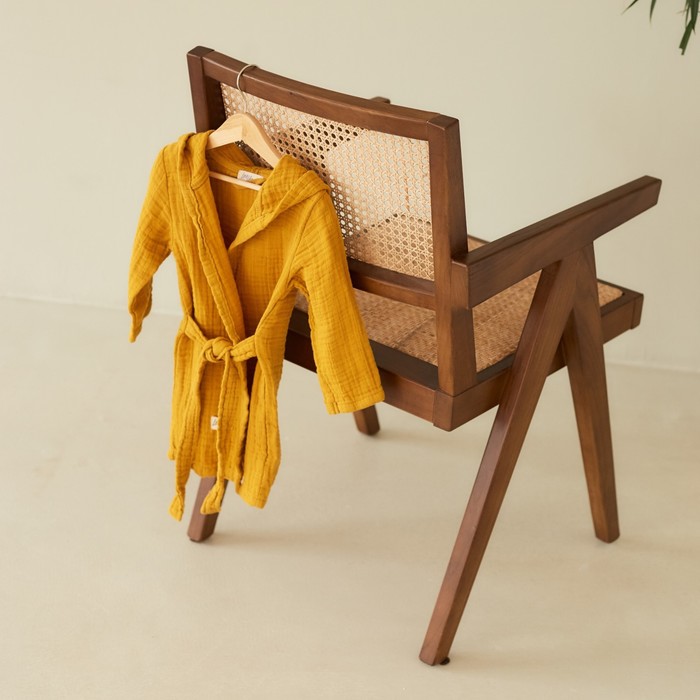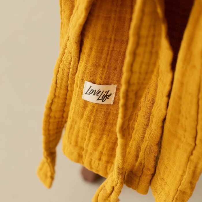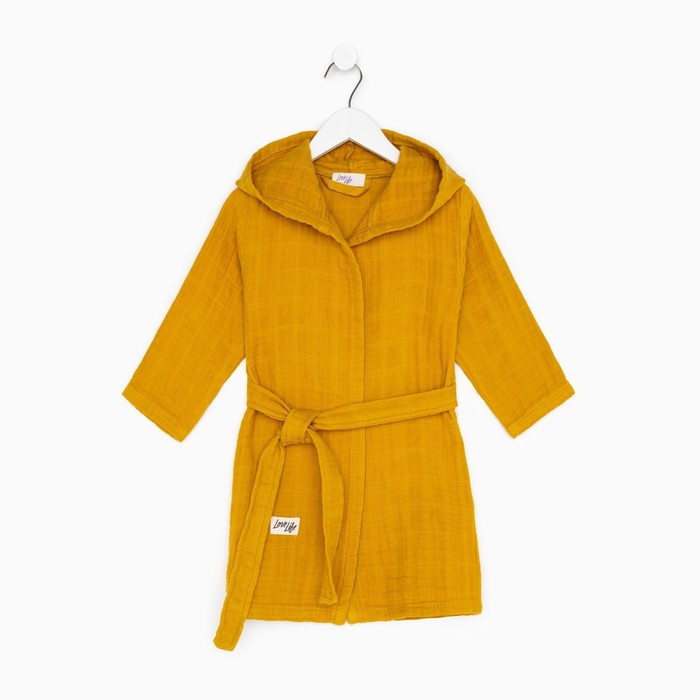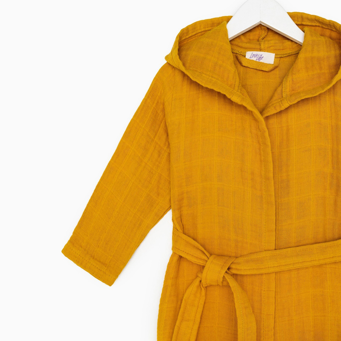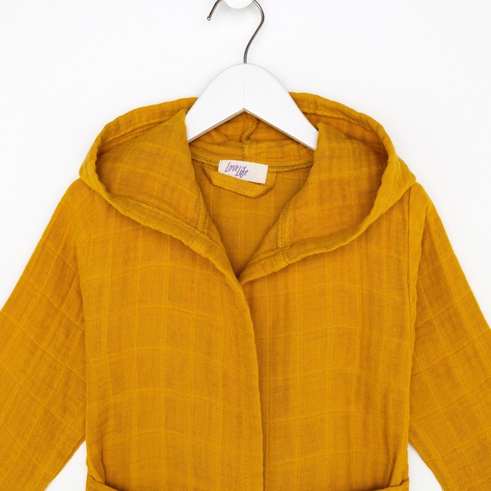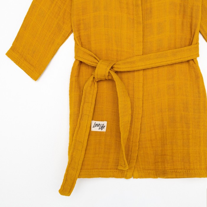 Халат детский муслиновый LoveLife (6 лет, рост 116-122 см), горчичный, 100% хлопок, 235 г/м²