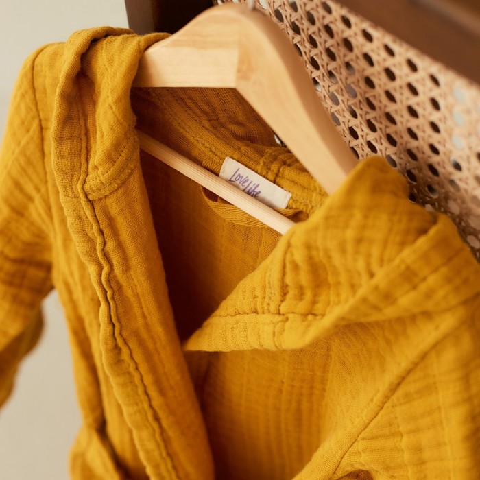 Халат детский муслиновый LoveLife (6 лет, рост 116-122 см), горчичный, 100% хлопок, 235 г/м² — Характеристики