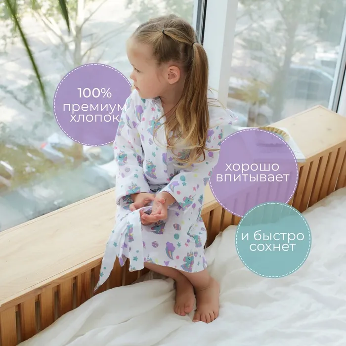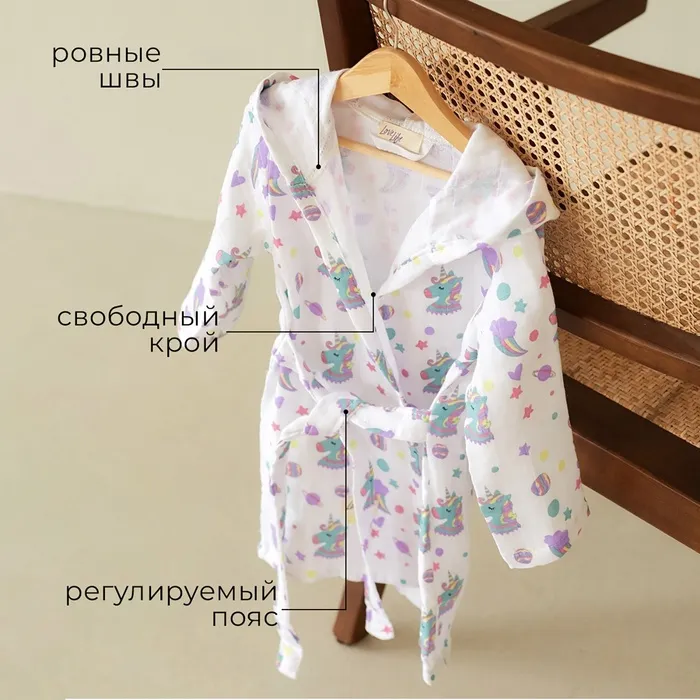 Халат детский муслиновый LoveLife «Единороги» (2 года, рост 92-98 см) 100% хлопок, 235 г/м² — Характеристики