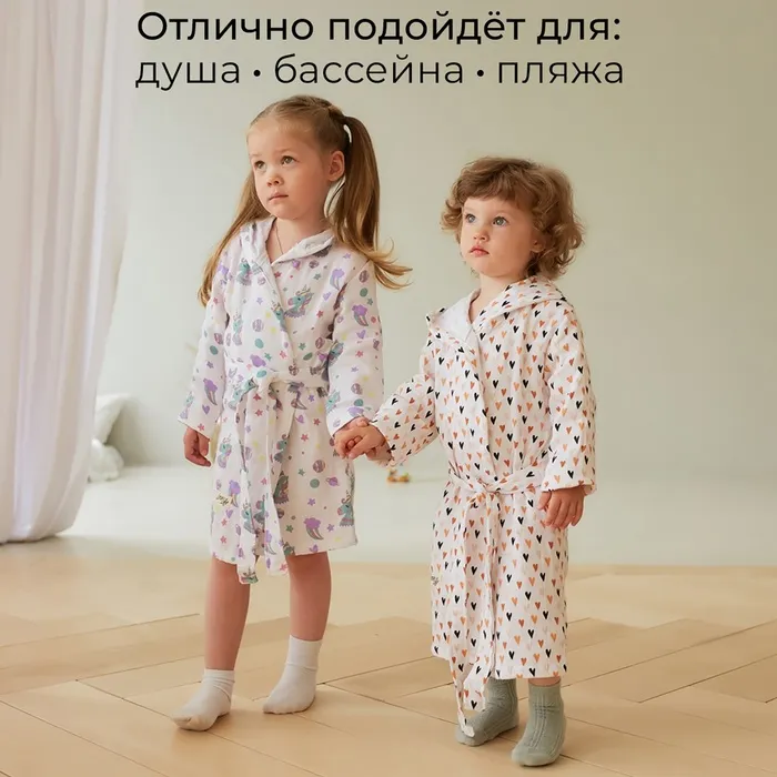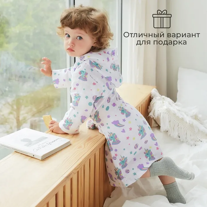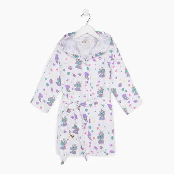 Халат детский муслиновый LoveLife «Единороги» (2 года, рост 92-98 см) 100% хлопок, 235 г/м²