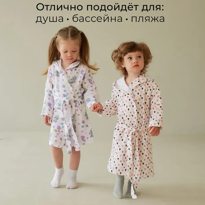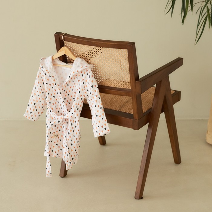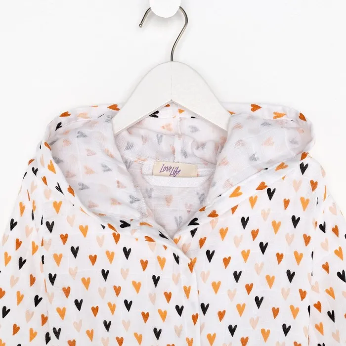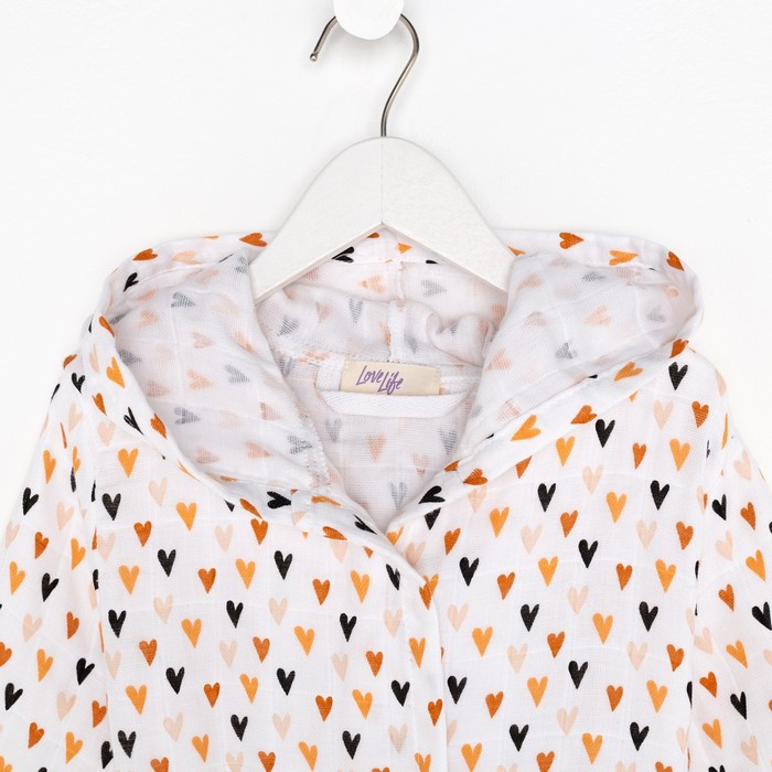 Халат детский муслиновый LoveLife «Сердечки» (2 года, рост 92-98 см) 100% хлопок, 235 г/м²